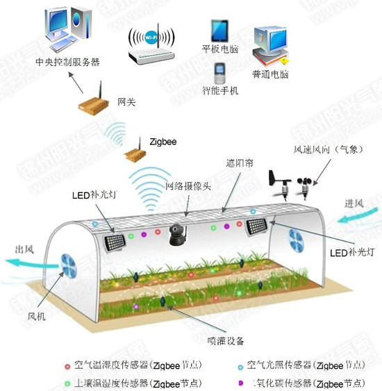 YG-SAC-SYS-01智慧農(nóng)業(yè)實(shí)訓(xùn)系統(tǒng)以農(nóng)業(yè)大棚模型為載體,能夠?qū)τ绊戅r(nóng)作物生長的環(huán)境傳感數(shù)據(jù)實(shí)時(shí)監(jiān)測(cè),同時(shí)根據(jù)環(huán)境參數(shù)閾值設(shè)置實(shí)現(xiàn)對(duì)現(xiàn)場(chǎng)電氣設(shè)備的自動(dòng)化控制,如風(fēng)扇、加濕器、除濕器、空調(diào)、照明設(shè)備、灌溉設(shè)備等,并支持遠(yuǎn)程控制。常用環(huán)境監(jiān)測(cè)傳感器包括空氣溫濕度、土壤溫濕度、環(huán)境光照等傳感器。亦可支持無縫擴(kuò)展無線傳感器節(jié)點(diǎn),如大氣壓力、水位監(jiān)測(cè)、CO2、煙霧、紅外人體感應(yīng)等傳感器。根據(jù)常見農(nóng)作物種植經(jīng)驗(yàn)對(duì)系統(tǒng)關(guān)鍵值的設(shè)定進(jìn)行判別,當(dāng)某種數(shù)據(jù)偏離設(shè)定值時(shí),大棚會(huì)自動(dòng)做出反應(yīng)(如溫度偏低時(shí)則打開供暖設(shè)施;溫度偏高時(shí)則開門通風(fēng);水量不足時(shí)則自動(dòng)打開噴淋裝置等)。通過更加精細(xì)和動(dòng)態(tài)的監(jiān)控方式對(duì)農(nóng)作物進(jìn)行管理,更好地感知農(nóng)作物的生長環(huán)境,通過智能控制提高資源利用率和生產(chǎn)力水平。