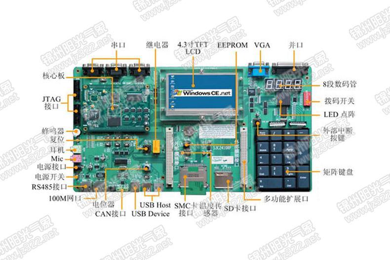 2、具有RS232接口、RS485接口、USB接口、CAN接口、SD卡接口、SMC卡接口、以太網(wǎng)、VGA輸出、LED點陣、AC97接口、矩陣鍵盤。