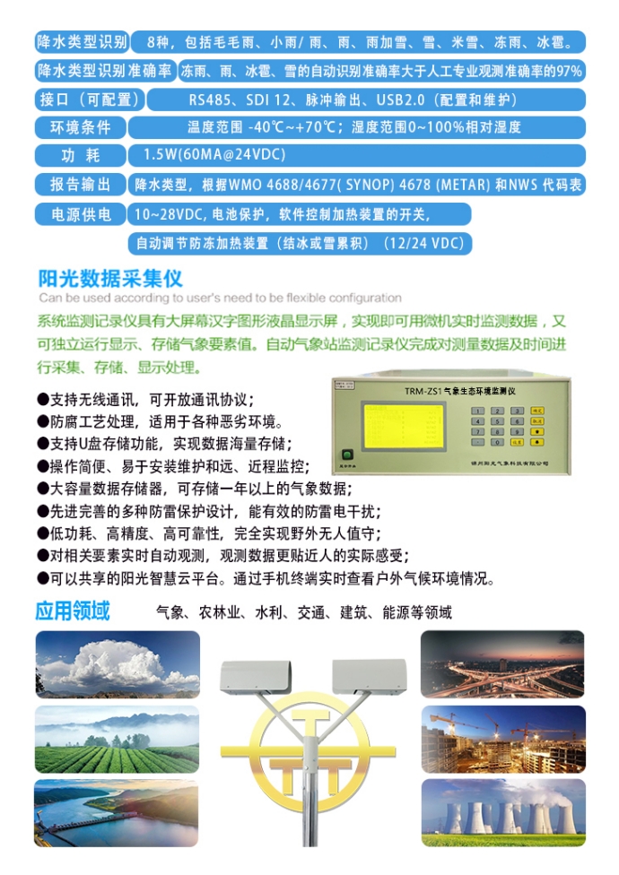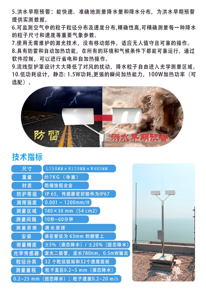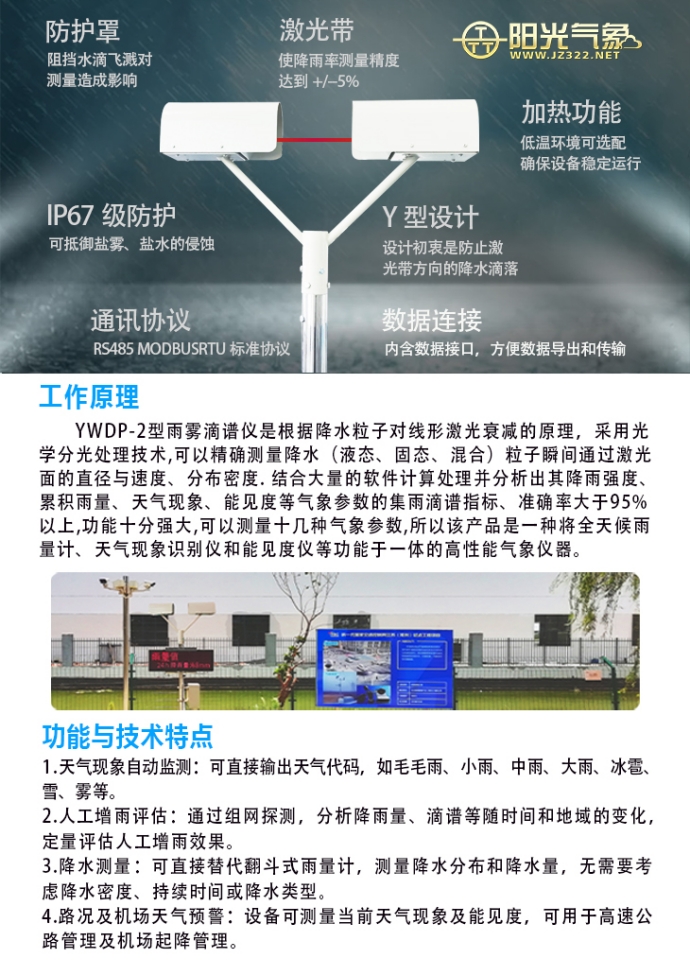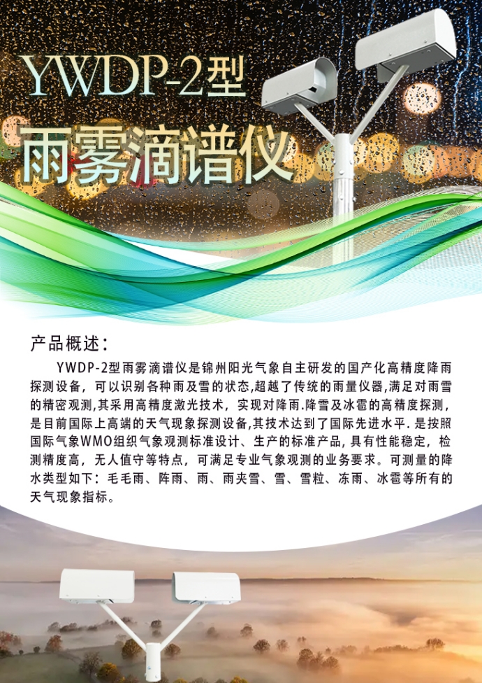 - YWDP-2型 雨霧滴譜儀是錦州陽光自主研發(fā)的國產(chǎn)化高精度降雨探測設(shè)備,可以識別各種雨及雪的狀態(tài),超越了傳統(tǒng)的雨量儀器,滿足對雨雪的精密觀測,其采用高精度激光技術(shù),實現(xiàn)對降雨.降雪及冰雹的高精度探測, 是按照國際氣象WMO組織氣象觀測標準設(shè)計、生產(chǎn)的標準產(chǎn)品。
