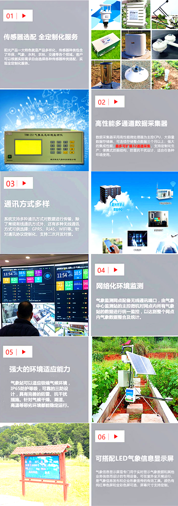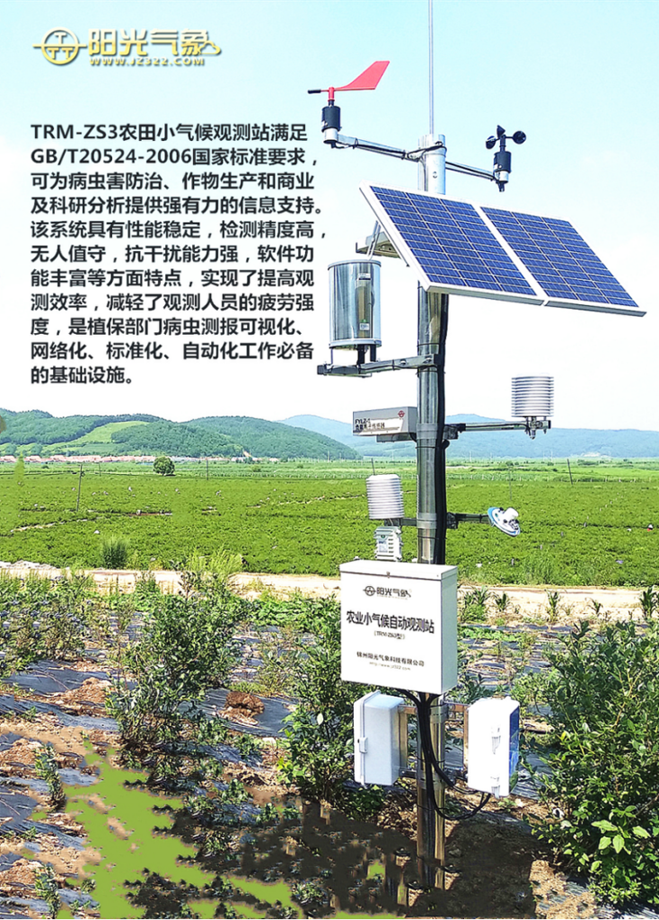 - TRM-ZS3農(nóng)田小氣候觀測站滿足GB/T 20524-2006國家標(biāo)準(zhǔn)要求,可為病蟲害防治、作物生產(chǎn)和商業(yè)及科研分析提供強(qiáng)有力的信息支持。該系統(tǒng)具有性能穩(wěn)定,檢測精度高,無人職守,抗干擾能力強(qiáng),軟件功能豐富等方面特點(diǎn)。