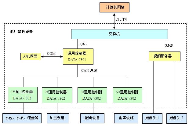 水廠監(jiān)控設備適用于供水企業(yè)遠程監(jiān)測水廠的進出水流量、水池水位、出廠壓力、水質以及加壓泵組、配電設備、消毒設施的運行狀態(tài)等。該設備同時可遠程控制加壓泵組的啟停,可對水廠內重要部位實施視頻監(jiān)控。