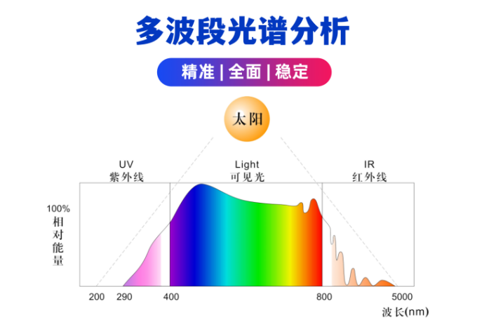 可監(jiān)測參數(shù) | 太陽總輻射、紫外光、綠光、紅橙光、紅外光、紫藍光、可見光、近紅外、遠紅外 |