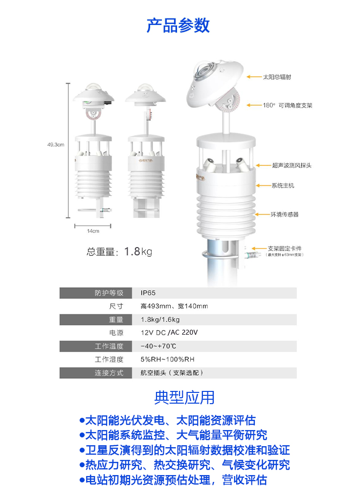 - 本產(chǎn)品是專業(yè)針對光伏發(fā)電站研發(fā)生產(chǎn)的一款最新型一體化光伏環(huán)境監(jiān)測儀,該設(shè)備采用新型一體化結(jié)構(gòu)設(shè)計,測量精度高,安裝使用方便,采用獨特的一體化超聲波微氣象儀,集溫濕度、風(fēng)速、風(fēng)向、壓力、背板溫度集成于一體。具有高精度,高穩(wěn)定性,是目前最適合光伏發(fā)電站上使用的領(lǐng)先級的一體化光伏環(huán)境監(jiān)測儀。
