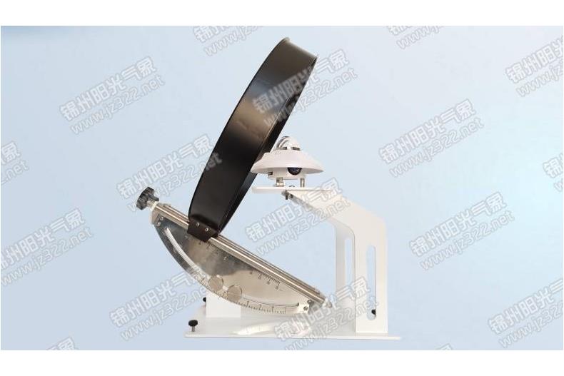 本裝置設(shè)有寬度為65mm,直徑為400mm的遮光環(huán)圈,固定在刻有緯度刻度與赤緯刻度標(biāo)尺的絲桿調(diào)整螺旋上。標(biāo)尺與支架固定在底盤上,根據(jù)架射地點(diǎn)的地理緯度而固定。總輻射表安裝在支架平臺上,其高度應(yīng)正好使輻射感應(yīng)平面(黑體)位于遮光環(huán)中心。通過調(diào)節(jié)赤緯度,可使遮光環(huán)全天遮住太陽的直接輻射。