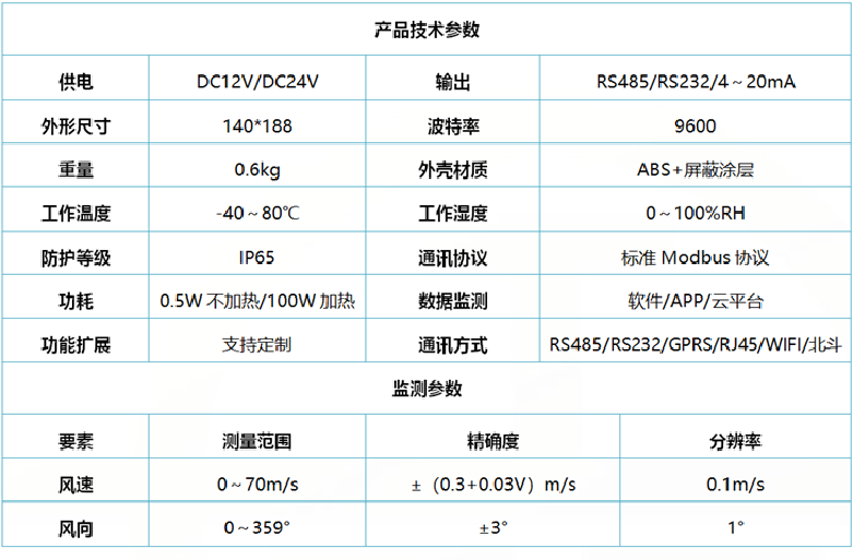 EC-A1 超聲波風(fēng)速風(fēng)向儀